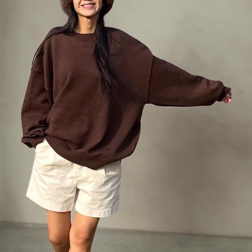히르시온산 기본 O넥 기본 소매 스웨터 여성용 2025 오버사이즈 숏 니트 울 풀오버 여성 캐주얼 두꺼운 따뜻한 부드러운 탑