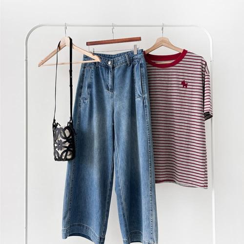 [옷자락]여자 깔끔한 루즈핏 하이웨이스트 와이드 데님팬츠