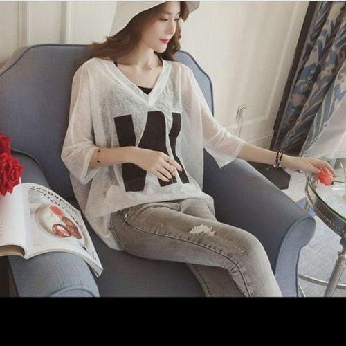 [에이치플러스몰]루즈핏 인기 여성 여름 나시 감성 반팔 시스루 티 셔