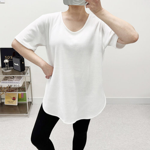 미즈큐즈 / 유넥 기모 반팔티 이너 레이어드 루즈핏 언발 겨울 반