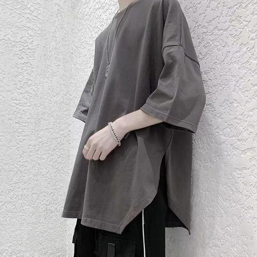 [지오다노]남성 사이드 슬릿 오버핏 레이어드용 롱 반팔 티셔츠 024900/01024900