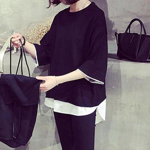 레이어드 무지 반팔티셔츠 라운드넥 루즈핏 체형커버 WEEBB8A