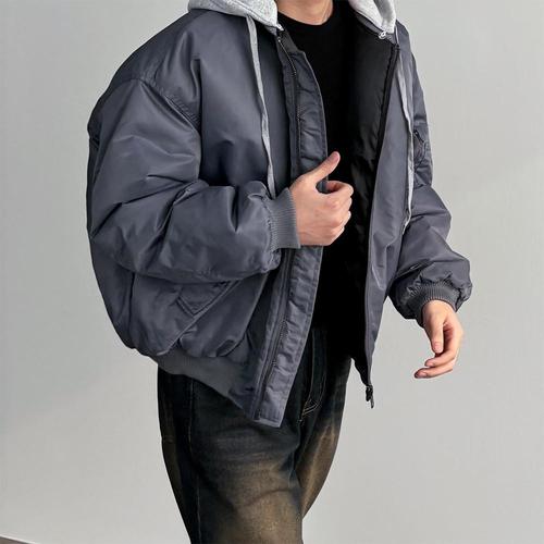 [패션큐브]후드 레이어드 항공점퍼 3color MA-1 오버핏 패딩 자켓