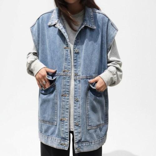 [신상오픈런]여성 캐주얼 데님 오버핏 레이어드 조끼 데일리 스타일