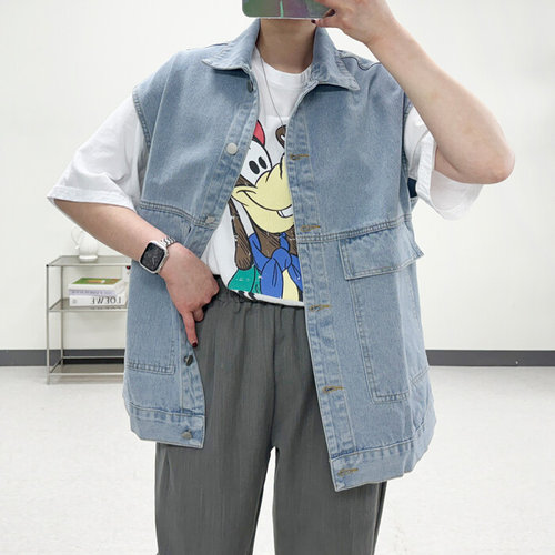 미즈큐즈 / 빅포켓 데님 박시 루즈핏 레이어드 청조끼 빅사이즈