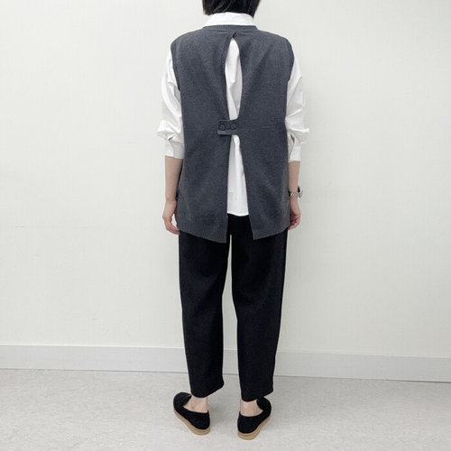 미즈큐즈 / 라운드넥 고리 단추 뒷트임 루즈핏 레이어드 니트 조