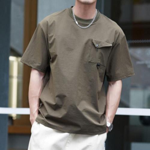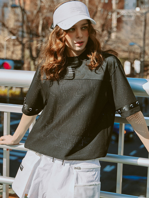 포켓 크루넥 골프 세미 오버핏 반팔 메쉬 우븐 티셔츠