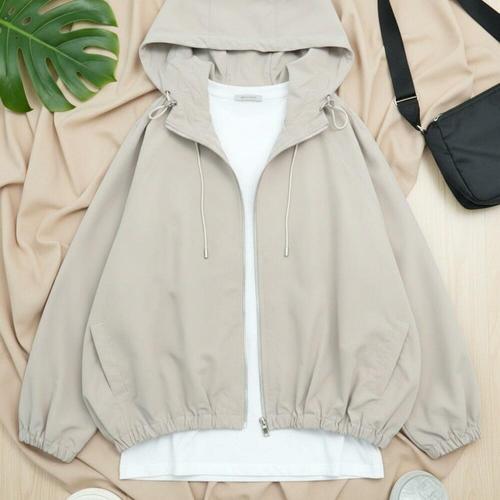 [옷자락]여성 루즈핏 크롭 후드 점퍼 바람막이 폴리 경량 밴딩