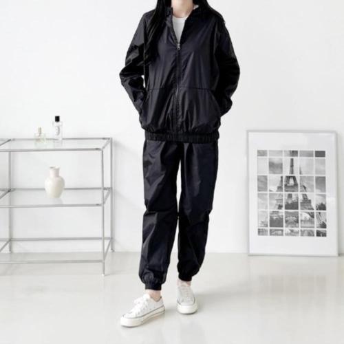 [옷자락]남녀 공용 루즈핏 후드 바람막이 트레이닝 복장