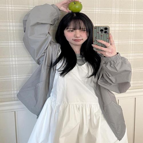 [옷자락] 여자 톤다운 아노락 스트링 루즈핏 바람막이 점퍼