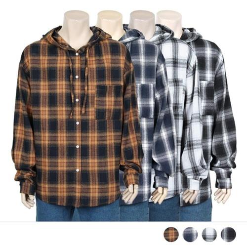 애플망고옷장 빅사이즈 긴팔 닐라 체크 n923후드 롱남방 오버핏셔츠