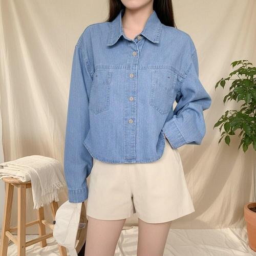 [옷자락]여성 루즈핏 크롭 데님 포켓 셔츠 자켓