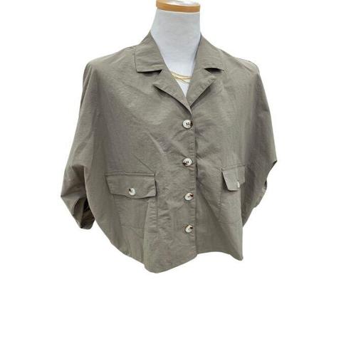 [옷자락] 여성 루즈핏 가죽 셔츠카라 포켓 장식 재킷