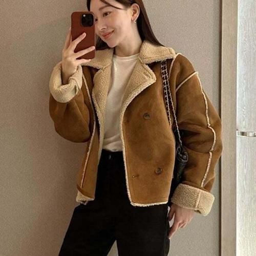 양털 스웨이드 여자 무스탕 페이크 점퍼 오버핏 자켓