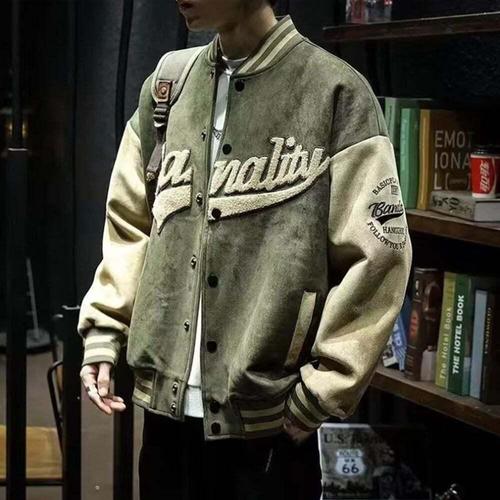 오버핏 아우터 야구점버 스웨이드 자켓 바시티