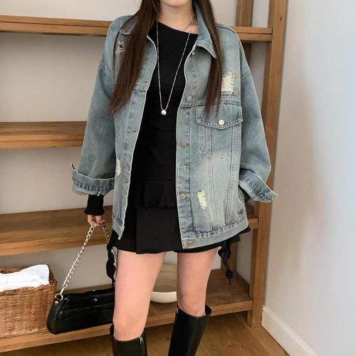 [옷자락]여자 데일리 캐주얼 트렌디 오버핏 데님 자켓