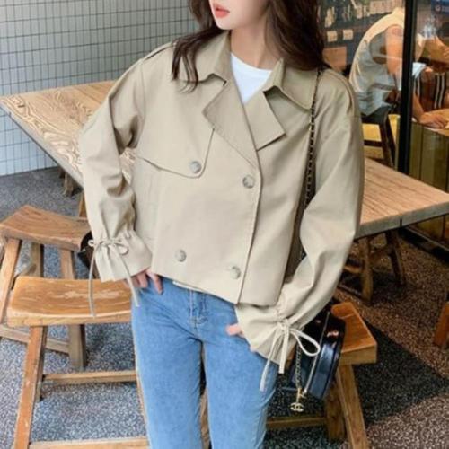 |CCJ6CF0|여성 폴리에스터 크롭 더블버튼 루즈핏 트렌치 코트