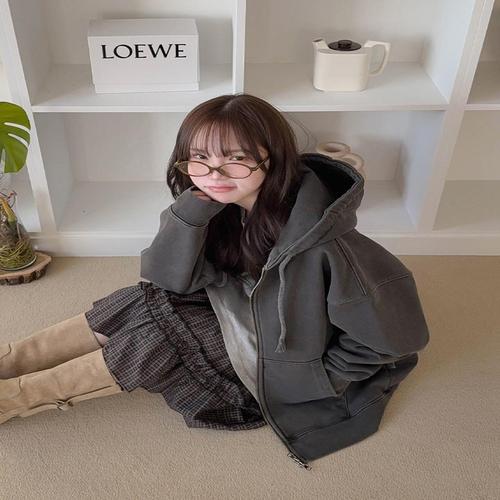 [옷자락]여자 기모안감 세미크롭 부드러운 오버핏 후드집업