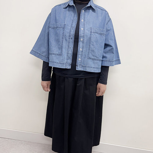 미즈큐즈 / 여름 빅사이즈 빅포켓 7부 소매 루즈핏 데님 자켓 2co