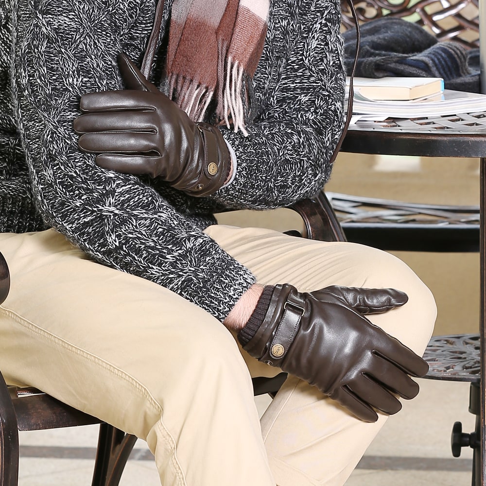 [해외] 호주 양모 실버 스터드탭 남성 가죽 장갑 OZ048