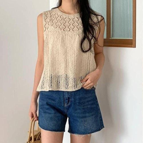 여름니트 니트나시 오프숄더니트 크롭 브이넥 크