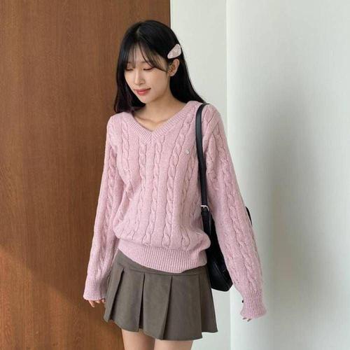 니트 브이넥니트 오프숄더니트 베이직 꽈배기니트