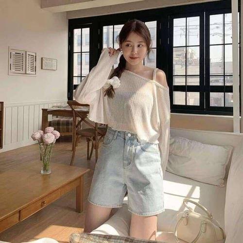 오프숄더 민소매 골지 여름 니트 UNC-040118