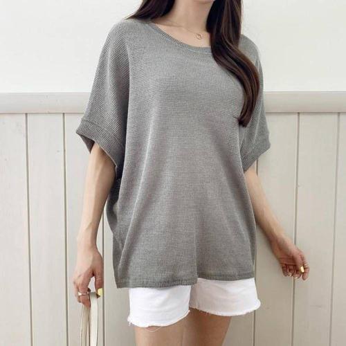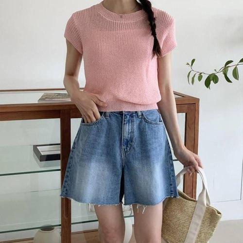 라운드넥 골지 반팔니트 오프숄더니트 니트 여름