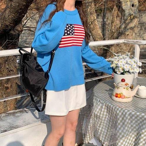 여름니트 오프숄더니트 노르딕니트 루즈 성조기