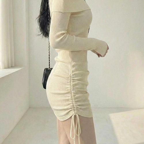 [하프클럽/셀러허브_여성트랜드패션]여자 바디콘 긴팔 오프숄더 골지 미니