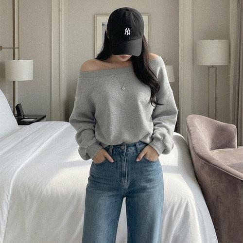 [옷자락] 여자 봄가을 여리핏 루즈 오프숄더 긴팔 맨투맨