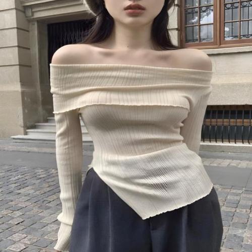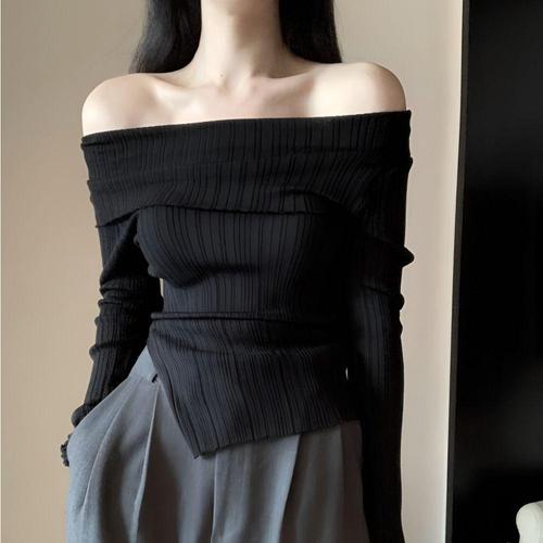 [오너클랜]인기상품 여성 오프숄더 슬림핏 언발 트임 긴팔 티셔츠 [WFG0H48_250915]