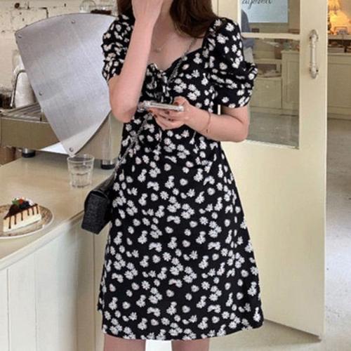 [오너클랜]인기상품 여자 스퀘어넥 퍼프 오프숄더 핀턱 블랙 미니원피스 [WC6EDD1_250916]