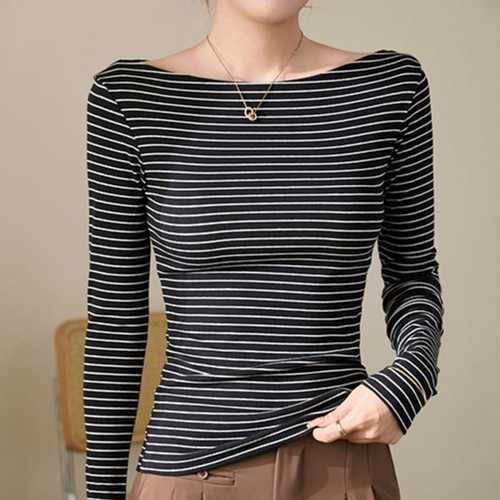 나바바 / NT3210 여성 슬림핏 단가라 보트넥 긴팔 티셔츠
