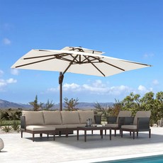 케이가든 대형 파라솔 고급 물통받침대 세트 야외 정원 카페 옥상 접이식 그늘막, 아이보리, 사각 2.5m 받침대세트