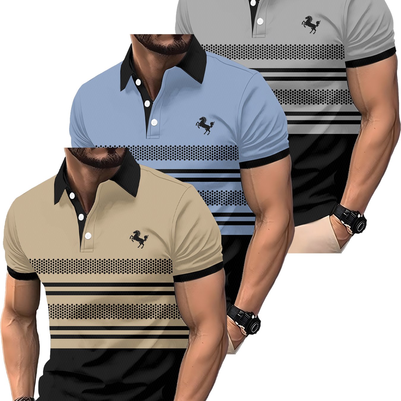 TEMU 3피스 세트 남성 여름 셔츠. 3D 패턴 프린팅 골프 셔츠. 부드럽고 편안한 셔츠 원단. 통기성 좋음. 야외 스포츠 또는 가정용으로 적합. 데일리 남성복으로 이상적. 남편 또는 가족을 위한 완벽한 선물.