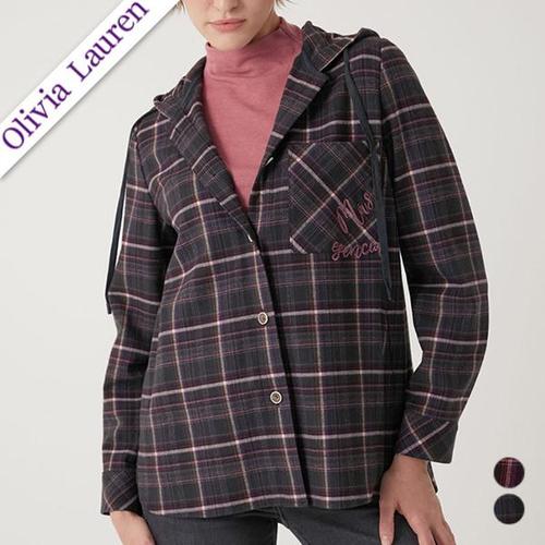 [올리비아로렌]져지 후드 체크 블라우스_VVBNL4F8291