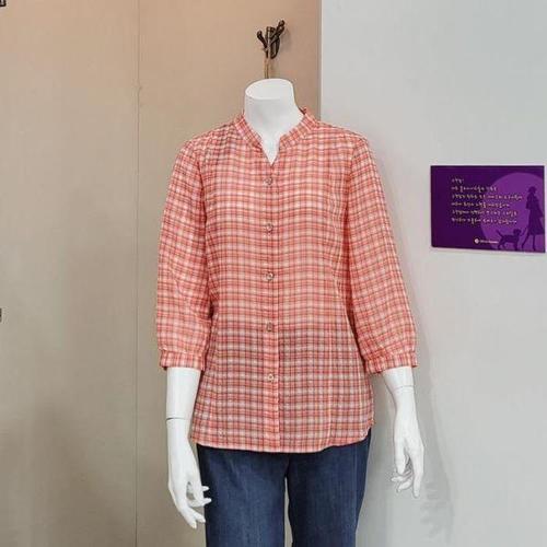 [올리비아하슬러]DP01 헨리넥 체크 블라우스 OHDFBL104