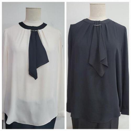 [올리비아하슬러]DP01 타이배색 비즈 블라우스 OHEWBL202