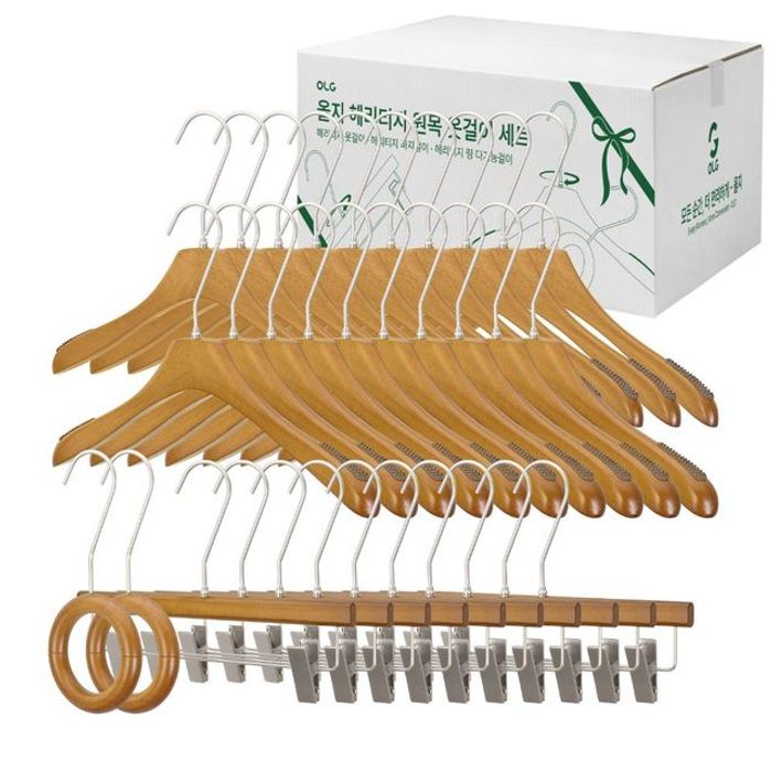 올지 올지 헤리티지 원목 옷걸이 선물세트 32P 프리미엄 논슬립 회전고리 자켓 니트 코트