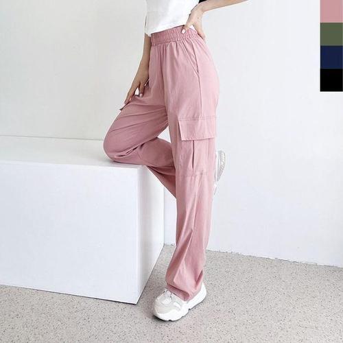 [에이치플러스몰]여자 시원한 쿨 카고 와이드 밴딩팬츠