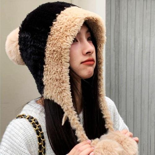 귀달이 털모자 모자 목도리 일체형 머플러 여성 방한