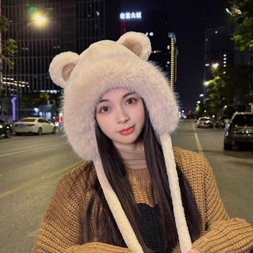 1+1 털모자 여성 겨울 귀달이 방한 귀여운 곰돌이 모자