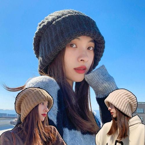 TEMU 가을 겨울 신상 울 원사 모자, 두꺼운 파일 모자, 겨울 야외용 보온 귀마개 모자, 큰 머리둘레용 방한 모자