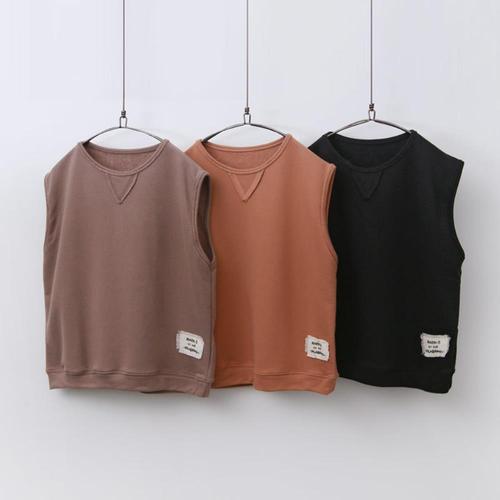 여자 캠퍼스룩 와펜 라운드 코튼 무지 조끼