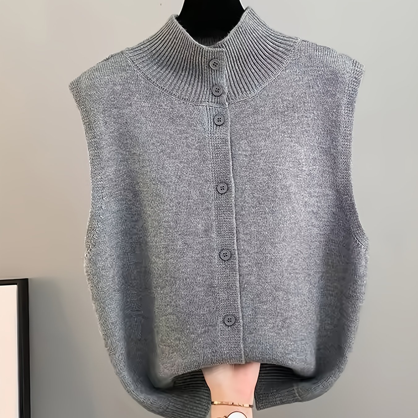 TEMU 우아한 여성용 조끼 | 단색, 하이넥, 민소매, 골지 칼라, 루즈핏, 봄/가을에 완벽