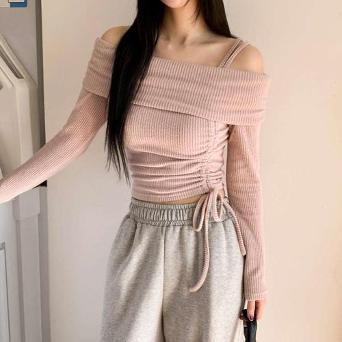 [다잇템]여성 골지 끈 보온 볼드숄더 슬림핏 니트