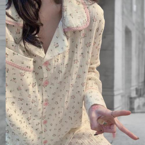 [신상오픈런]여성용 사계절 긴팔 잠옷 세트 요루 스타일 파자마 상하의