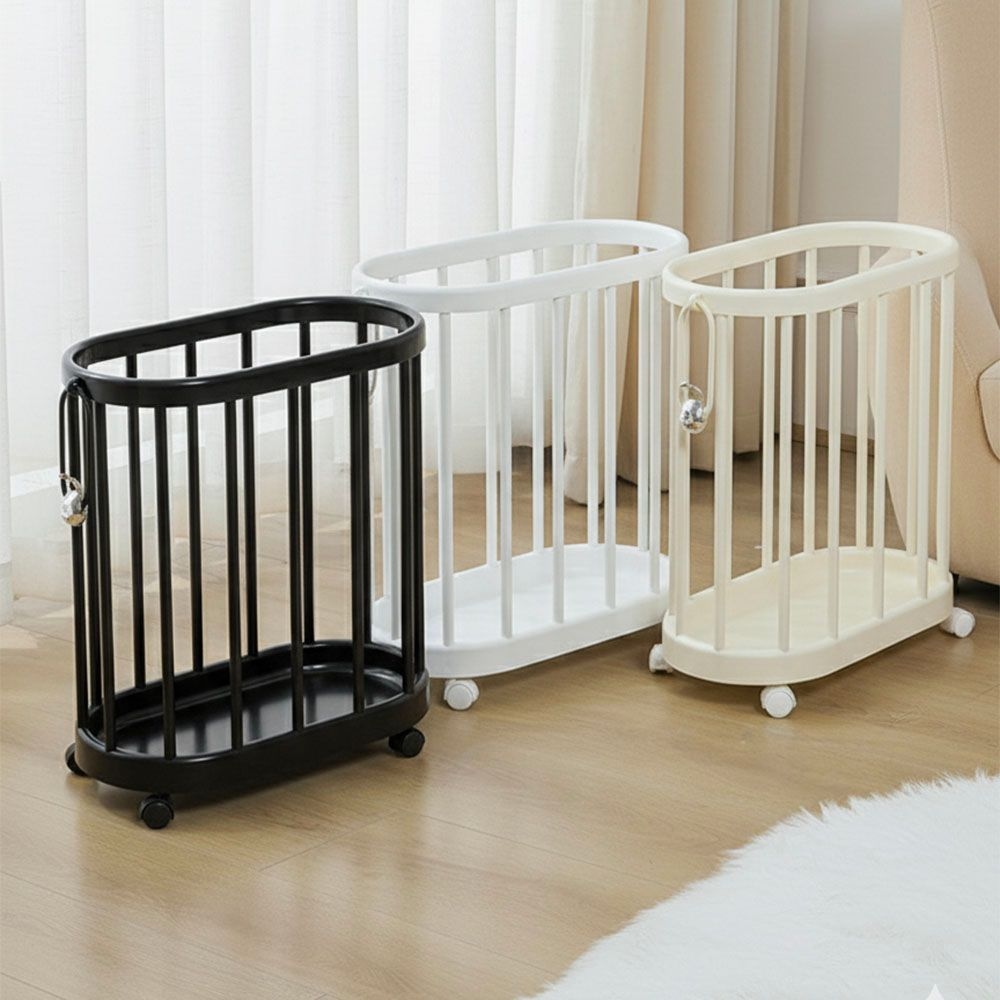 토끼핸들 이동식 빨래바구니 운동기구 요가 매트 수납 보관함 타원형 트롤리 카트 3색상