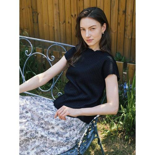 요하넥스 라운드넥 플리츠 포인트 쉬폰원피스(블랙)